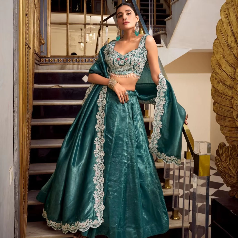 Tipo:Lehenga Bordado Secuencia de desgaste de fiesta