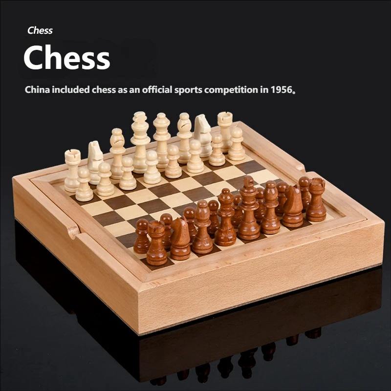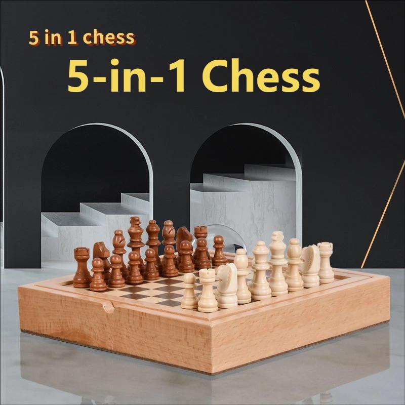 Juego de Mesa 5 en 1 Superior y Versátil con Estuche de Madera de Haya, Diseño Moderno, Ajedrez y Damas de Alta Calidad, Juego de Interior