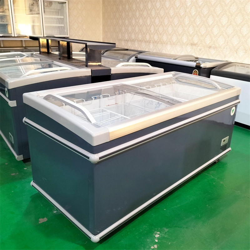 2m 3M 1500L Supermercado Gran capacidad Cofre Isla Congelador Pantalla Puerta corrediza de vidrio Comercial Escaparate congelado profundo