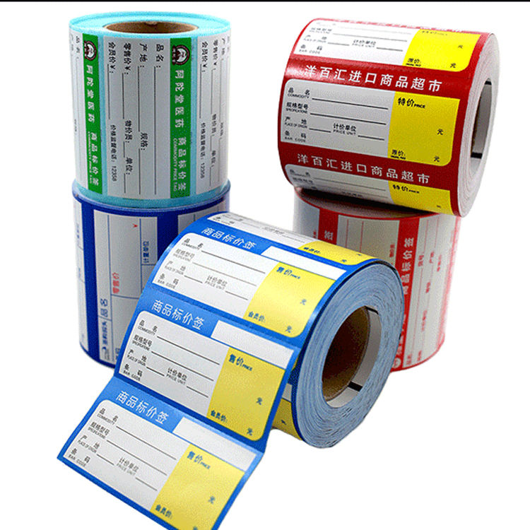 Embalaje de supermercado Autoadhesivo Código de barras Impresión Etiqueta Papel adhesivo 2X1 4X6 10X15 Rollo de etiquetas de transferencia térmica