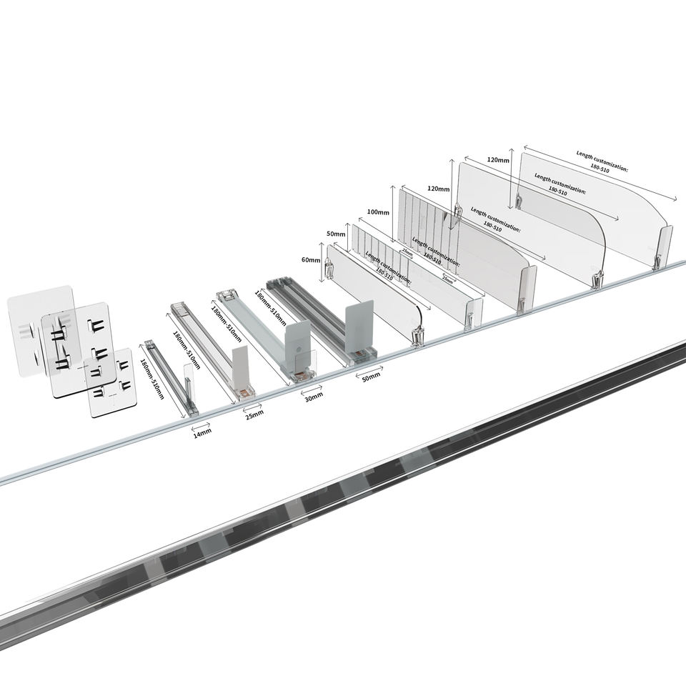 Empujador y divisores de estante con resorte de plástico para supermercado