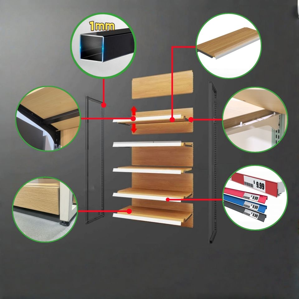 Estante de supermercado Estante de metal y madera multifunción de Servicio Ligero Estante de farmacia más buscado
