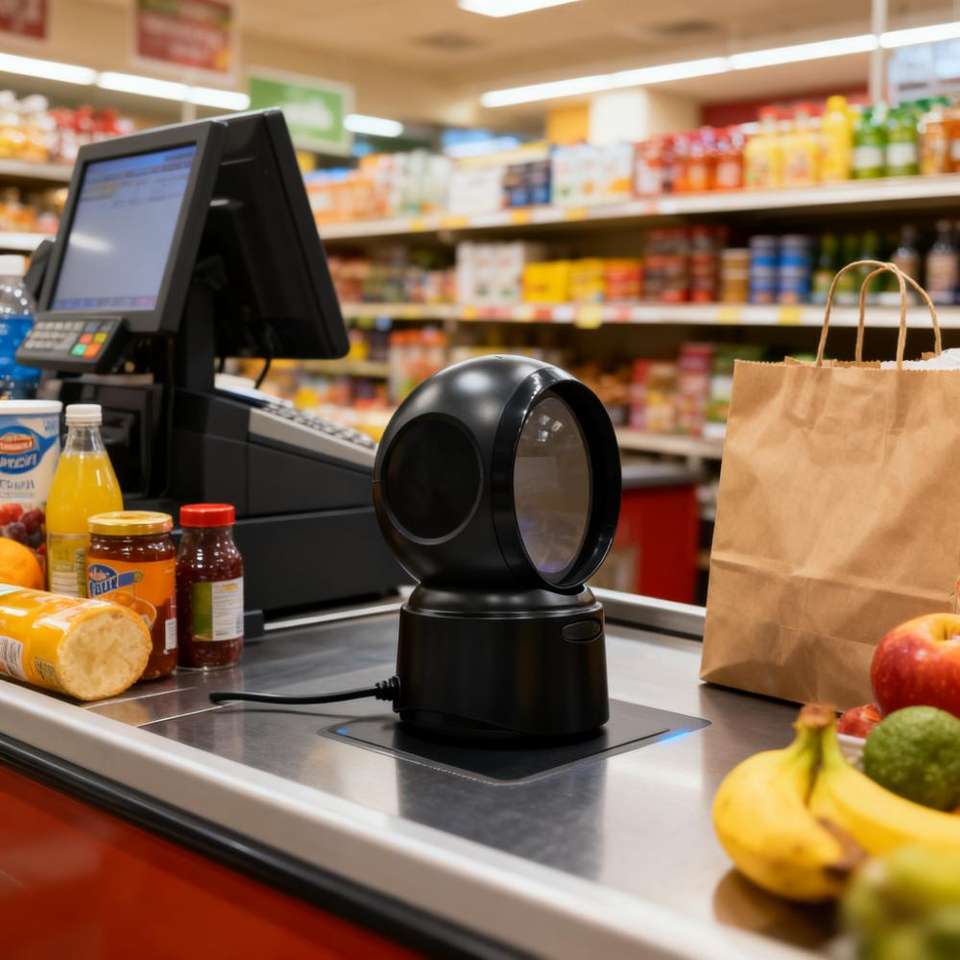 El personal del supermercado utiliza el escáner de código de barras 2D QR interfaz USB UPC EAN lector de código para tienda minorista Pos máquina Compatible A4 Stock