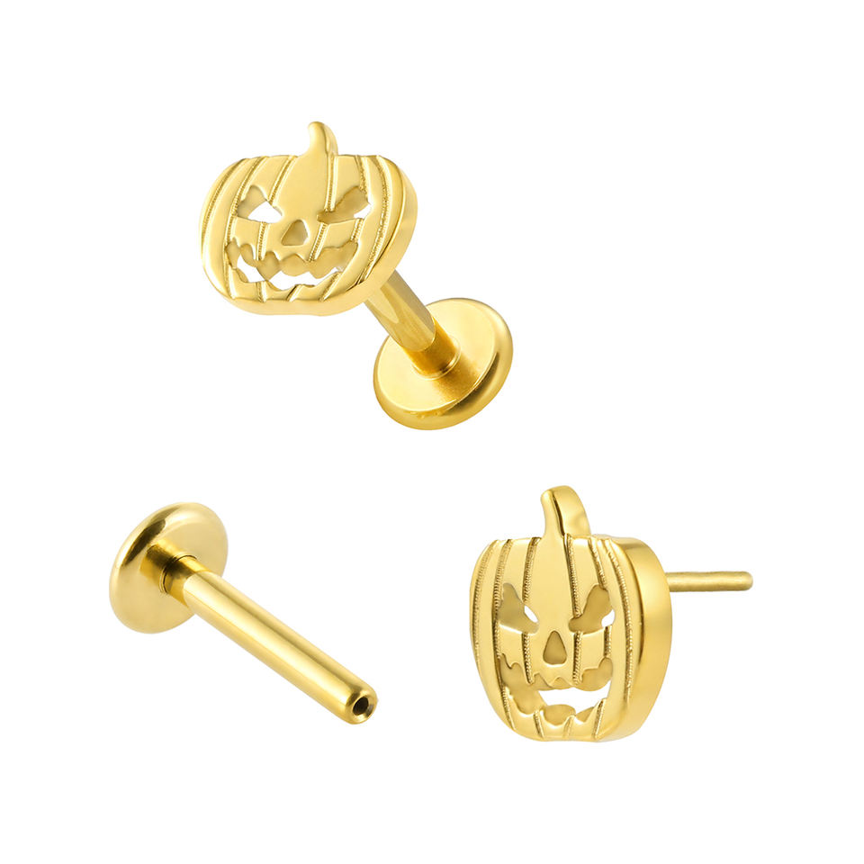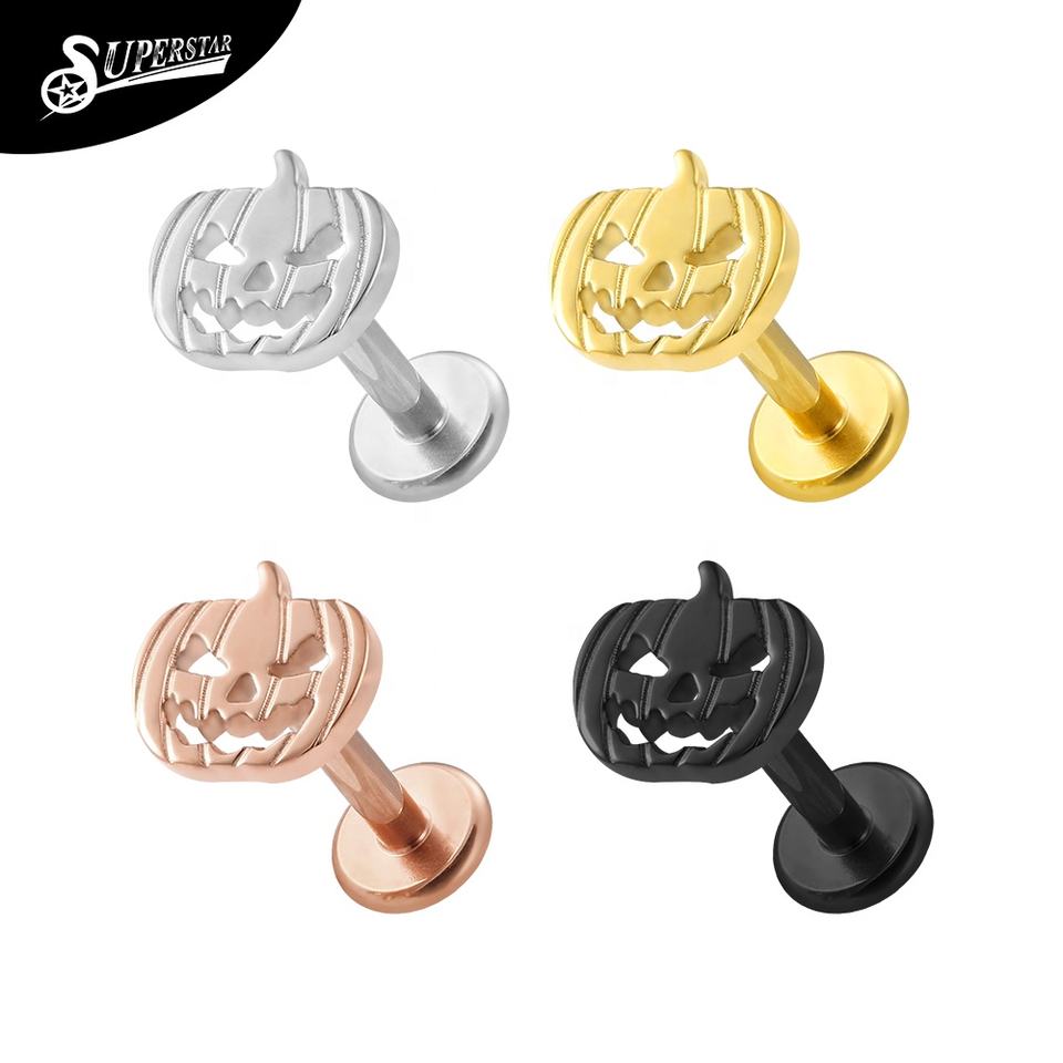 Piercing Labret de Titanio G23 Personalizado Superstar, Diseño de Calabaza con Expresión de Mueca, Piercing para Labio Frontal, Tendencia para Bodas, Piercing Corporal Moderno