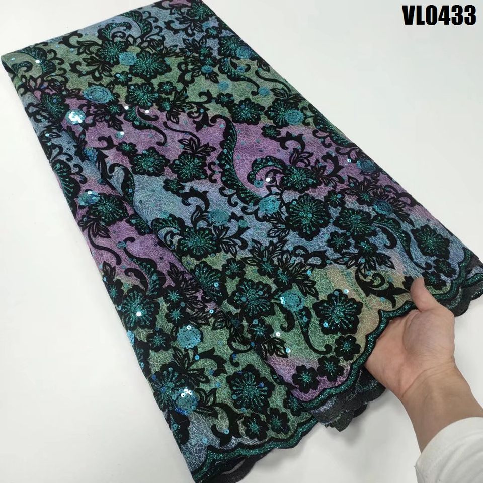 Supoo Aso ebi-encaje de terciopelo con lentejuelas, tejido de encaje senegalés