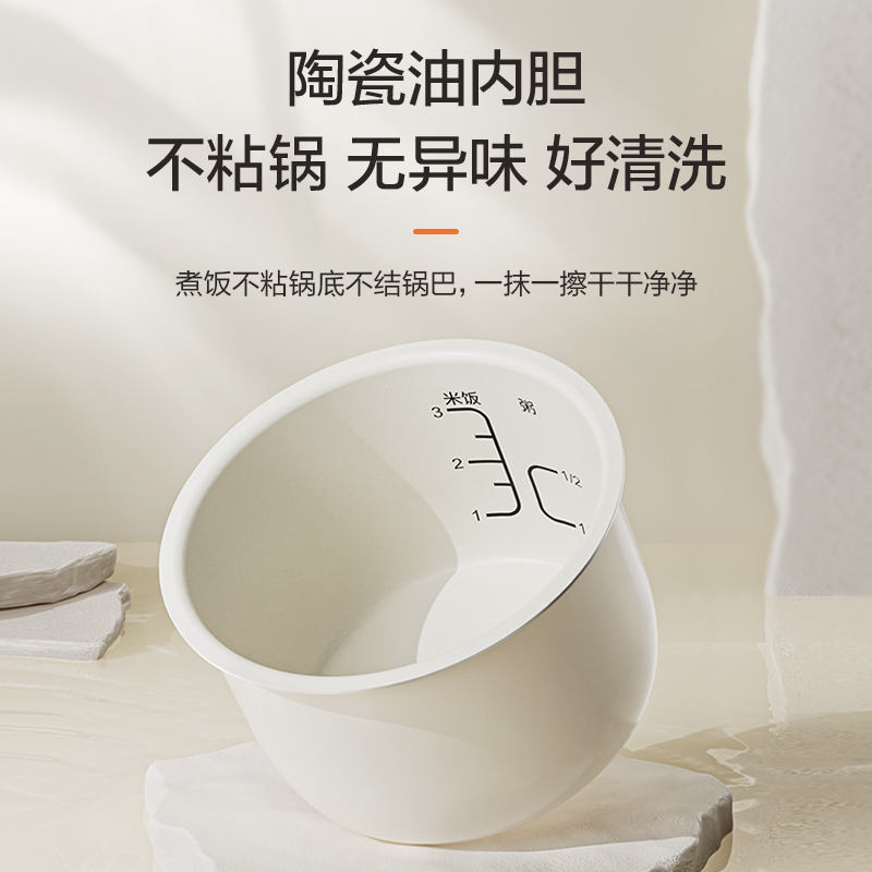 Mini olla arrocera Supor de 1,6 l con forma de tambor, olla interior de cerámica blanca, eléctrica multiusos para uso en dormitorios