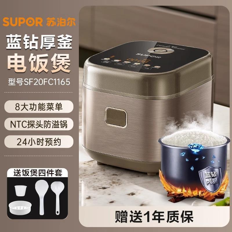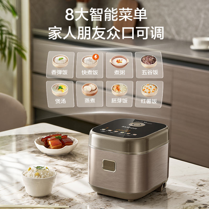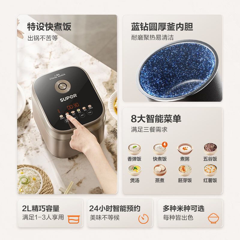 Mini olla arrocera Supor de 2L, color champán dorado, inteligente, multifuncional, para 2-3 personas, con función de cocción al vapor y cocción