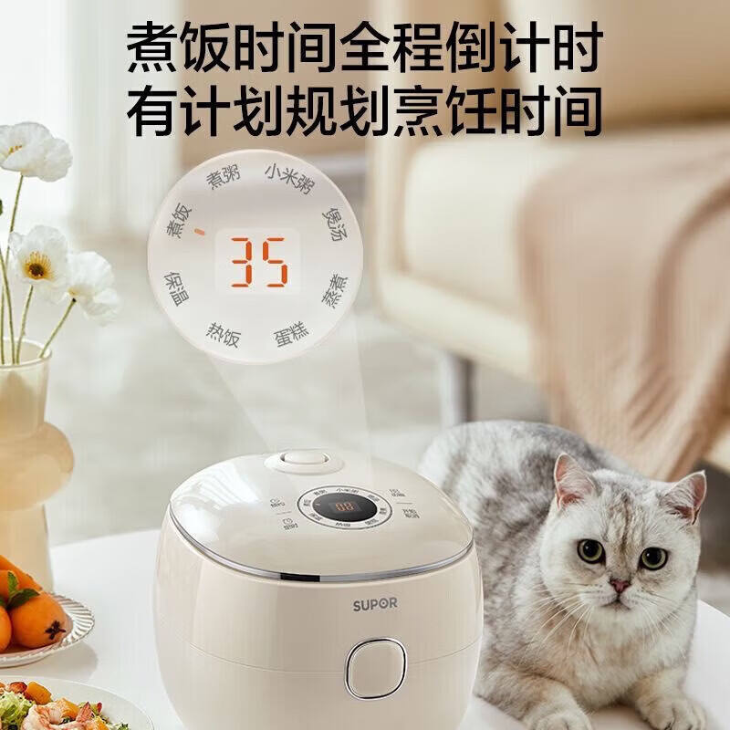 Olla Arrocera Inteligente Supor de 2L, Mini, Eléctrica, Multifunción, con Recipiente Interior de Porcelana y Control por Microcomputadora