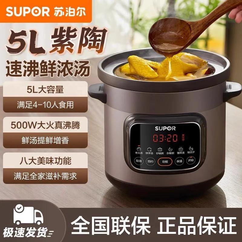 Olla de Cocción Lenta Programable Supor de 5L, Olla Eléctrica Multifunción para Guisos, Sopas y Papillas, Olla Saludable