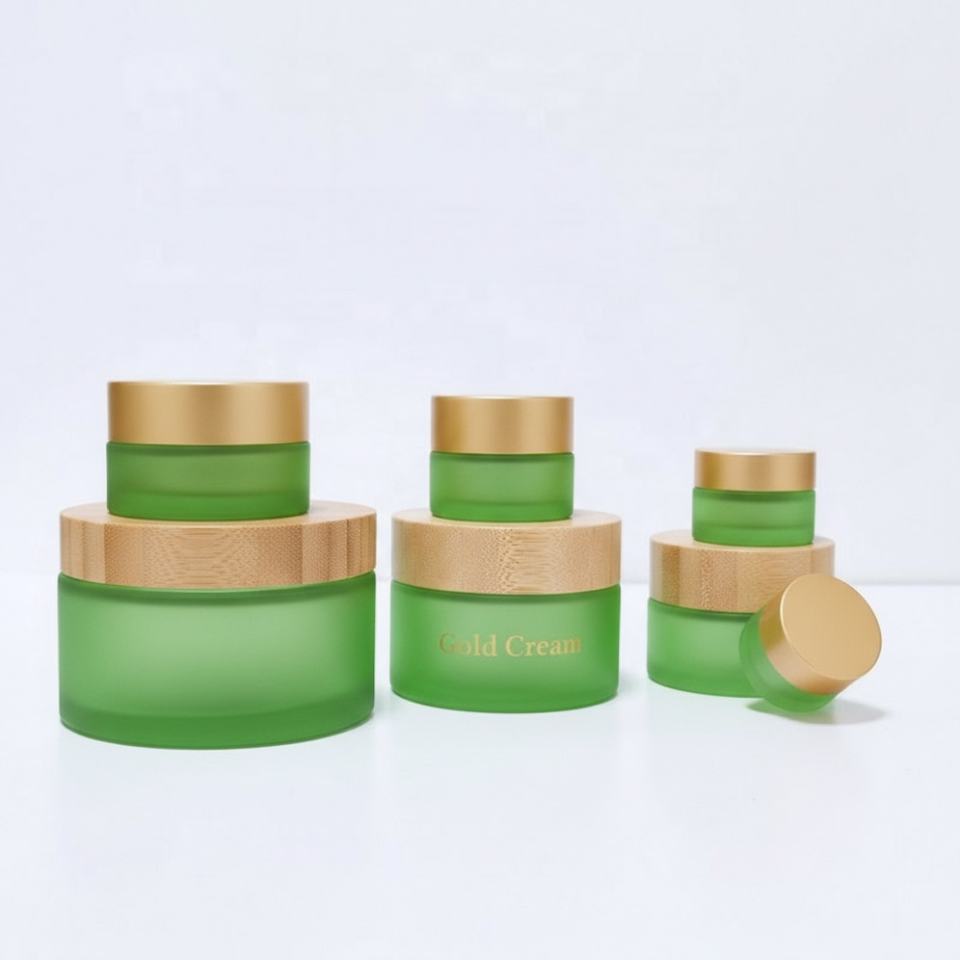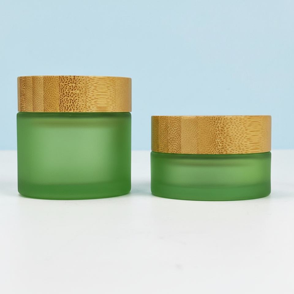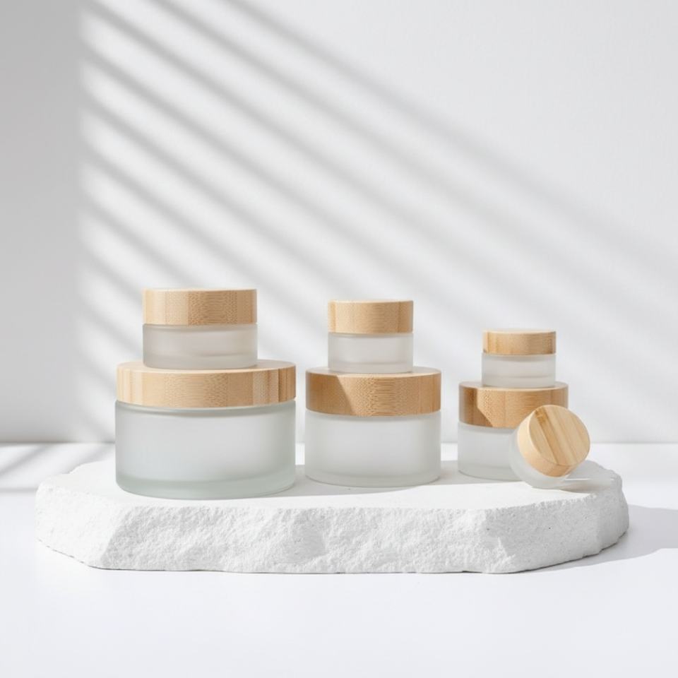 Tarro de vidrio cosmético para crema facial, personalizable con LOGO, 30g 50ml 100ml 200ml, vacío, con tapa de rosca de bambú, ámbar, transparente o esmerilado.