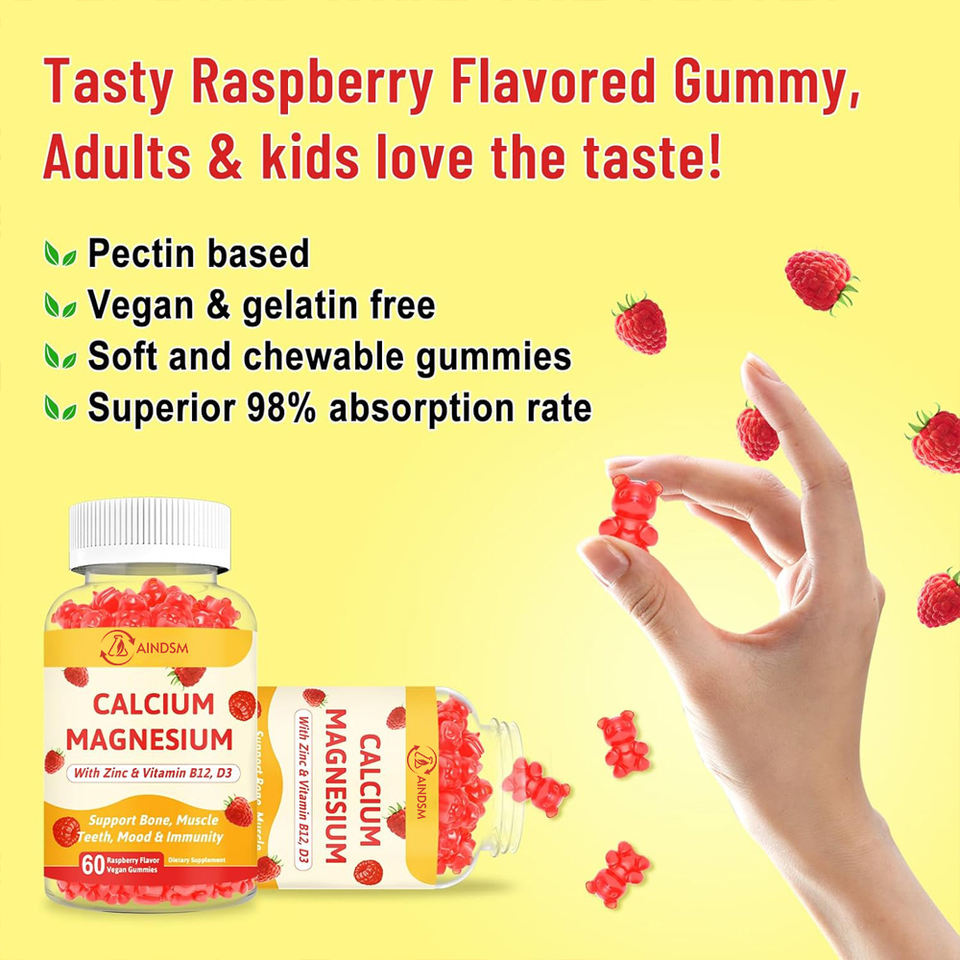 Gomitas para el Sistema Inmunológico, Salud Ósea y Muscular, Bajo Precio, Magnesio, Calcio, Vitamina Zinc para Adultos