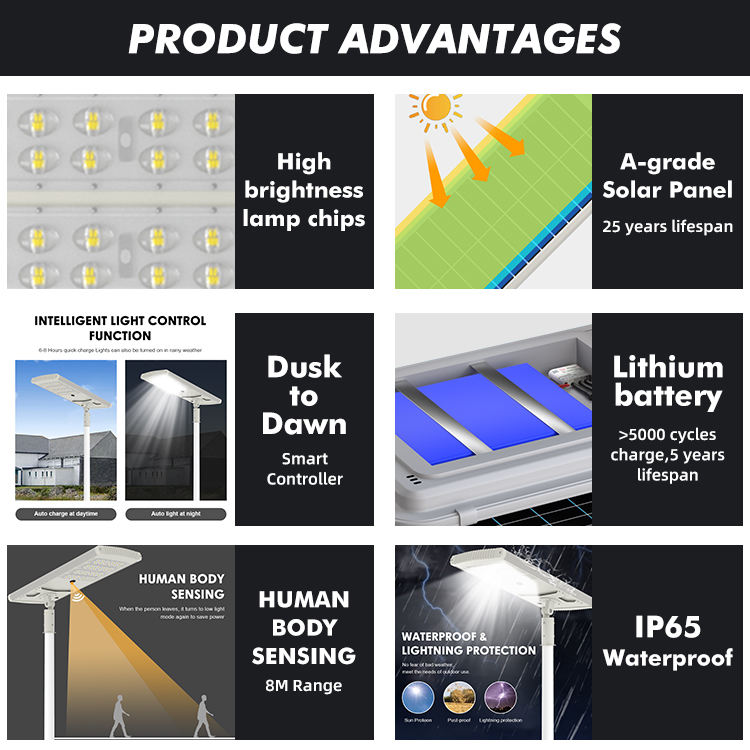 Soporte L/C pago AORUITAI Lámpara de carretera de alto rendimiento Aluminio 40W 50W 60W 80W Todo en uno Farolas LED con energía solar