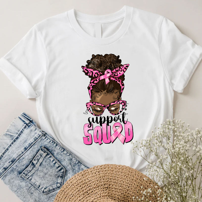 Support Squad Concientización sobre el cáncer de mama Impresión de transferencia de calor Apliques Pegatinas Listo para presionar para prendas Sudaderas con capucha Bolsas Camiseta