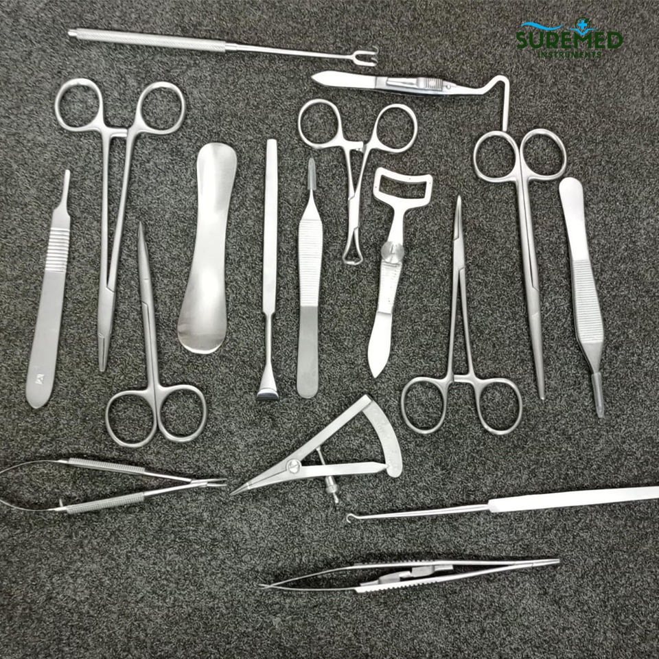 Juego de Blefaroplastia SureMed Instruments de 17 Piezas, Kit de Instrumentos Quirúrgicos Oftálmicos Básicos con Certificación CE Clase II para Uso Hospitalario