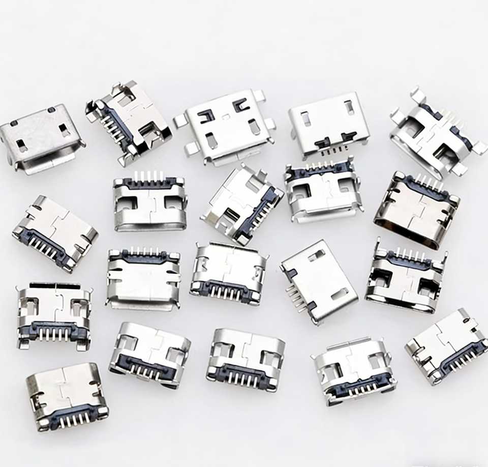 Conector Micro USB hembra de montaje superficial/insertación directa, tipo micrófono para teléfono Android, interfaz de carga.Descripción