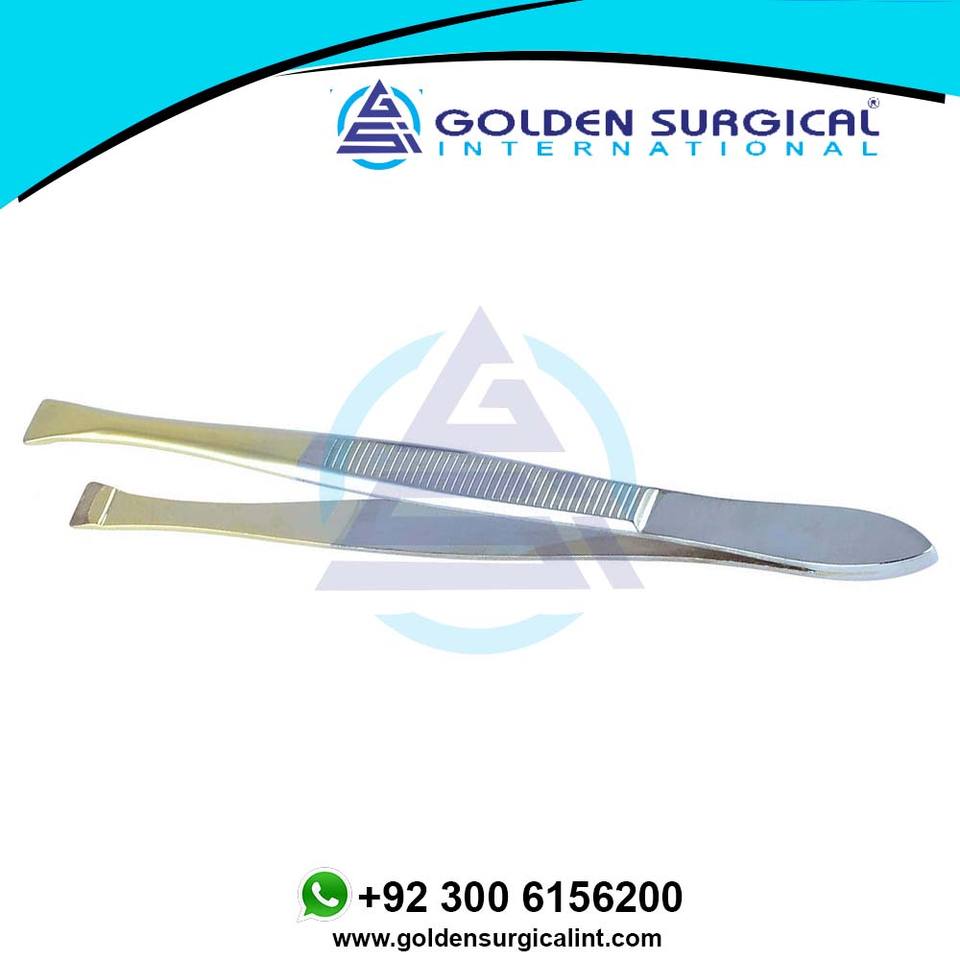 Pinzas de Acero Inoxidable Alemán de Grado Quirúrgico con Punta Dorada (Rectas) para Depilación Facial y Diseño de Cejas