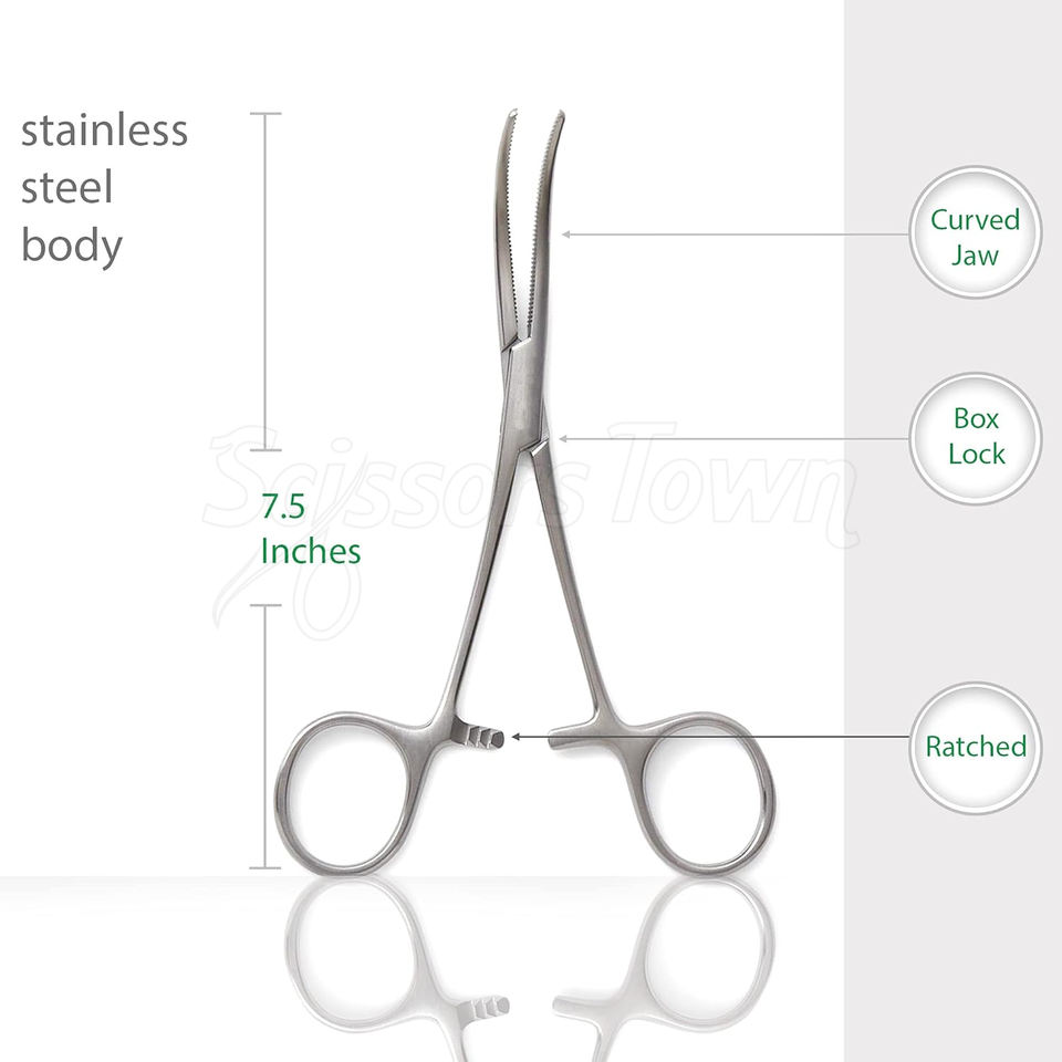 Pinzas de bloqueo para hemostatos quirúrgicos, abrazadera de acero inoxidable curvada de 8 pulgadas con mordazas dentadas completas para uso médico