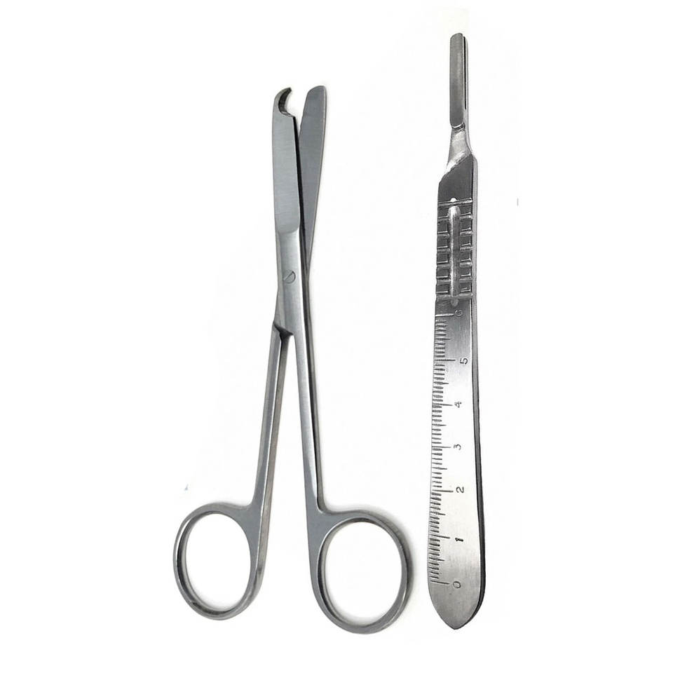 Kit de Instrumentos Quirúrgicos Manual MOL, Tijeras para Suturas, Mango de Bisturí de 4.5 Pulgadas # 4 Cuchillas Quirúrgicas Estériles de Acero Inoxidable 10