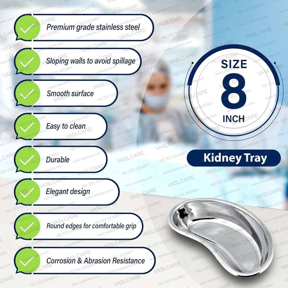 Bandeja de riñón quirúrgica Instrumentos veterinarios dentales de acero inoxidable de 8 "de Vaslcare