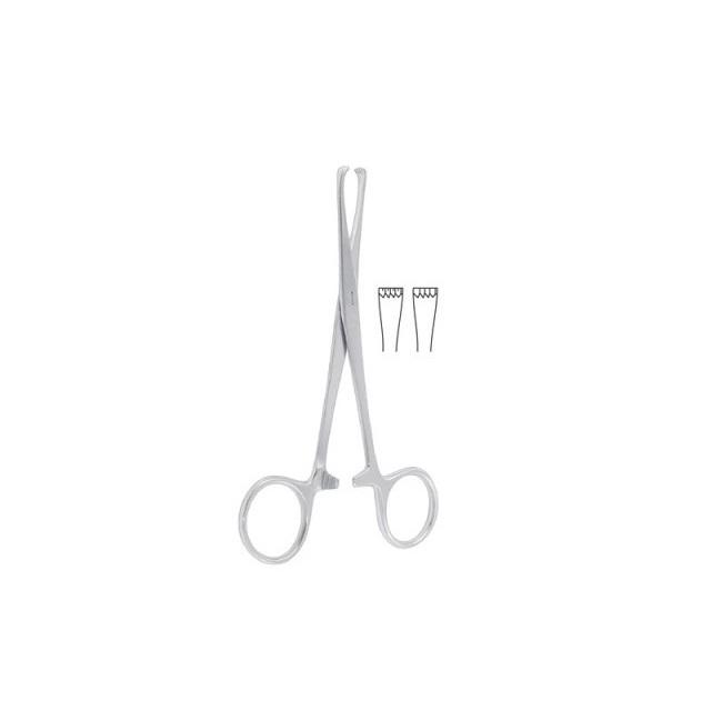 Nombre del producto:Pinzas hemostáticas quirúrgicas Tuffier con dientes, acero inoxidable.