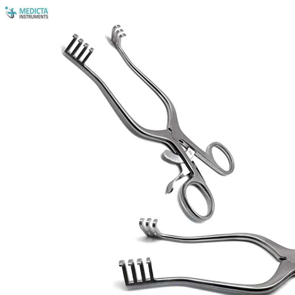 Retractor Quirúrgico de acero inoxidable, Retractor Quirúrgico de 4x3 dientes de retención automática