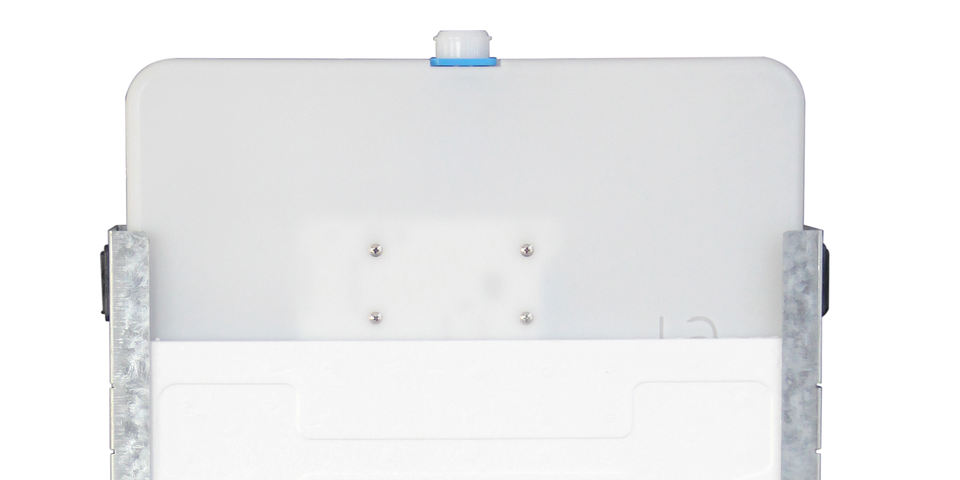 Jarrón suspendido Medio marco Cisterna Ajuste Placa de descarga superior (Blanco y Plata)