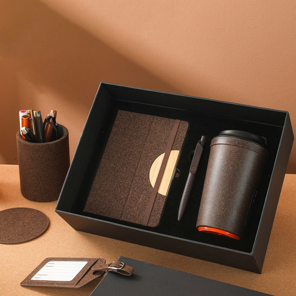 Caja de Regalo Empresarial Sostenible, Serie de Corcho con Residuos de Café, Kit de Oficina 6 en 1, Personalizable para Beneficios de Empleados y Regalos para Clientes