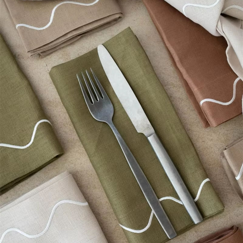 Nombre del producto:Algodón Lino festoneado servilleta lugar esteras