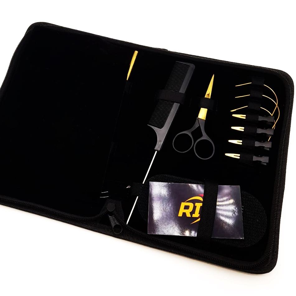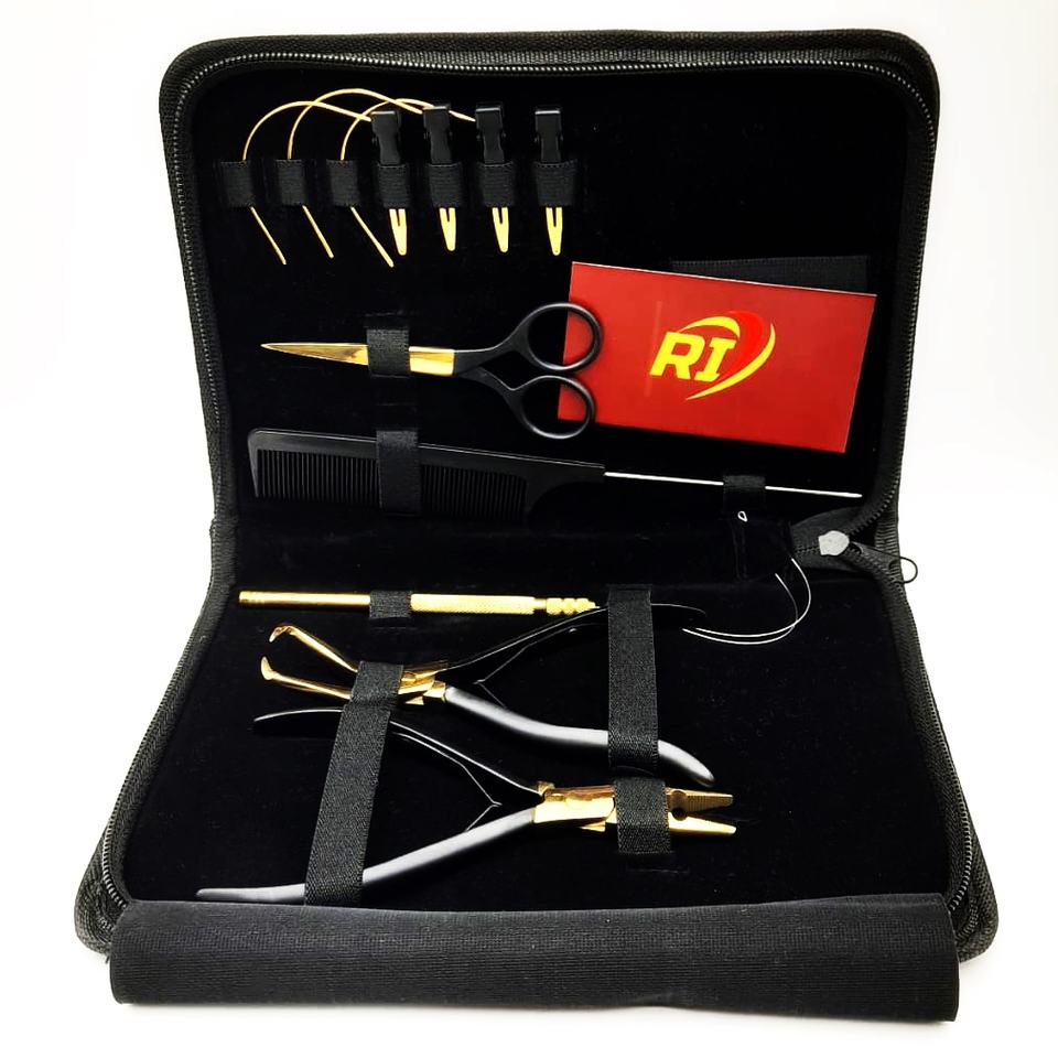 Kit de herramientas de extensión de cabello chapado en oro sostenible Clips de seccionamiento atados a mano de acero inoxidable Tirando de cuentas de extensión de cabello de bucle