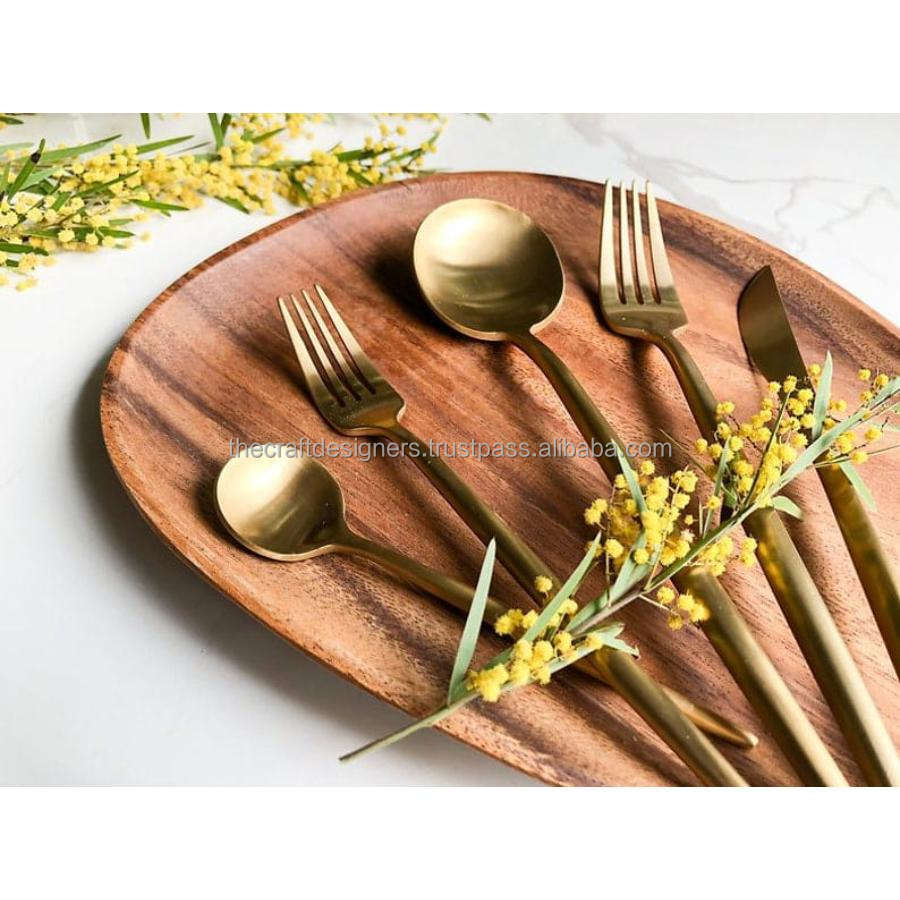 Juego de cubiertos de oro sostenible para cena, vajilla reutilizable de acero inoxidable, juego de cubiertos para eventos de boda con embalaje de caja inteligente