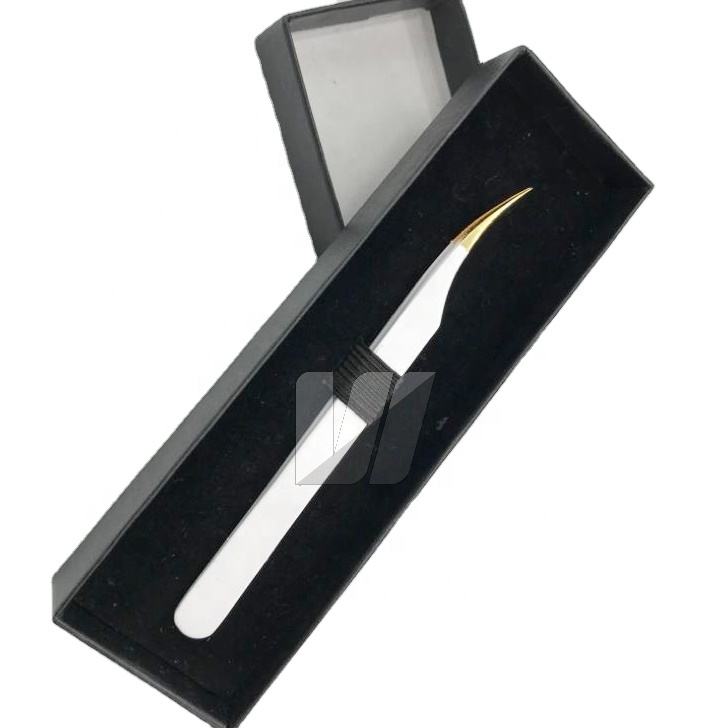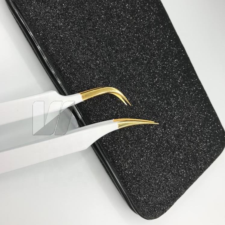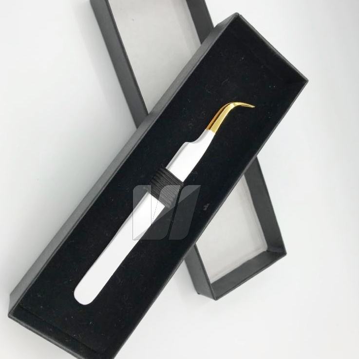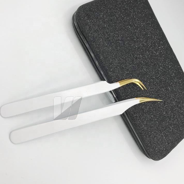 Pinzas de extensión de pestañas de acero inoxidable japonesas con punta de oro sostenible Logotipo personalizado Tipo de Punta puntiaguda recubierta de color blanco nieve