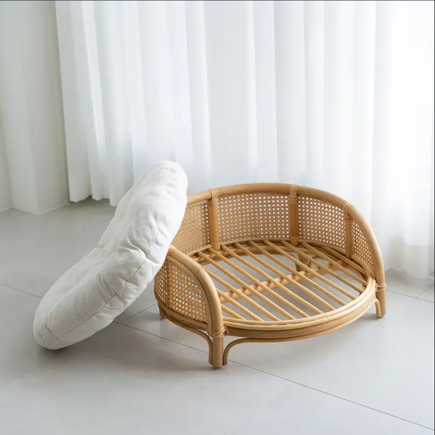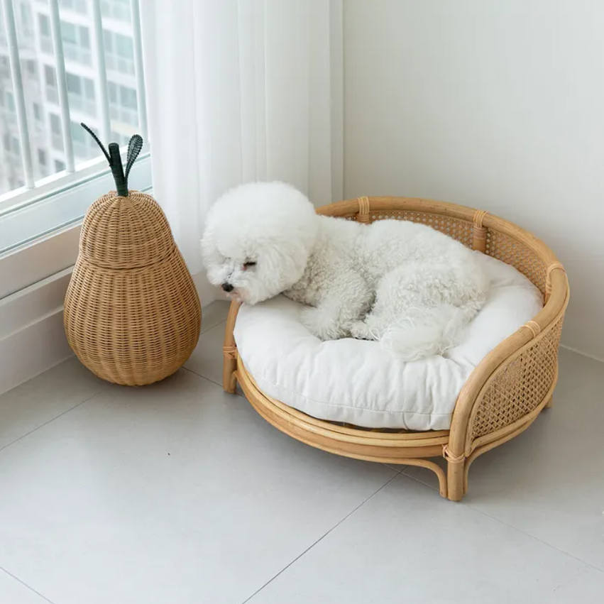 Cama de ratán sostenible hecha a mano para mascotas muebles tejidos naturales de estilo bohemio para perros y gatos al por mayor de Vietnam