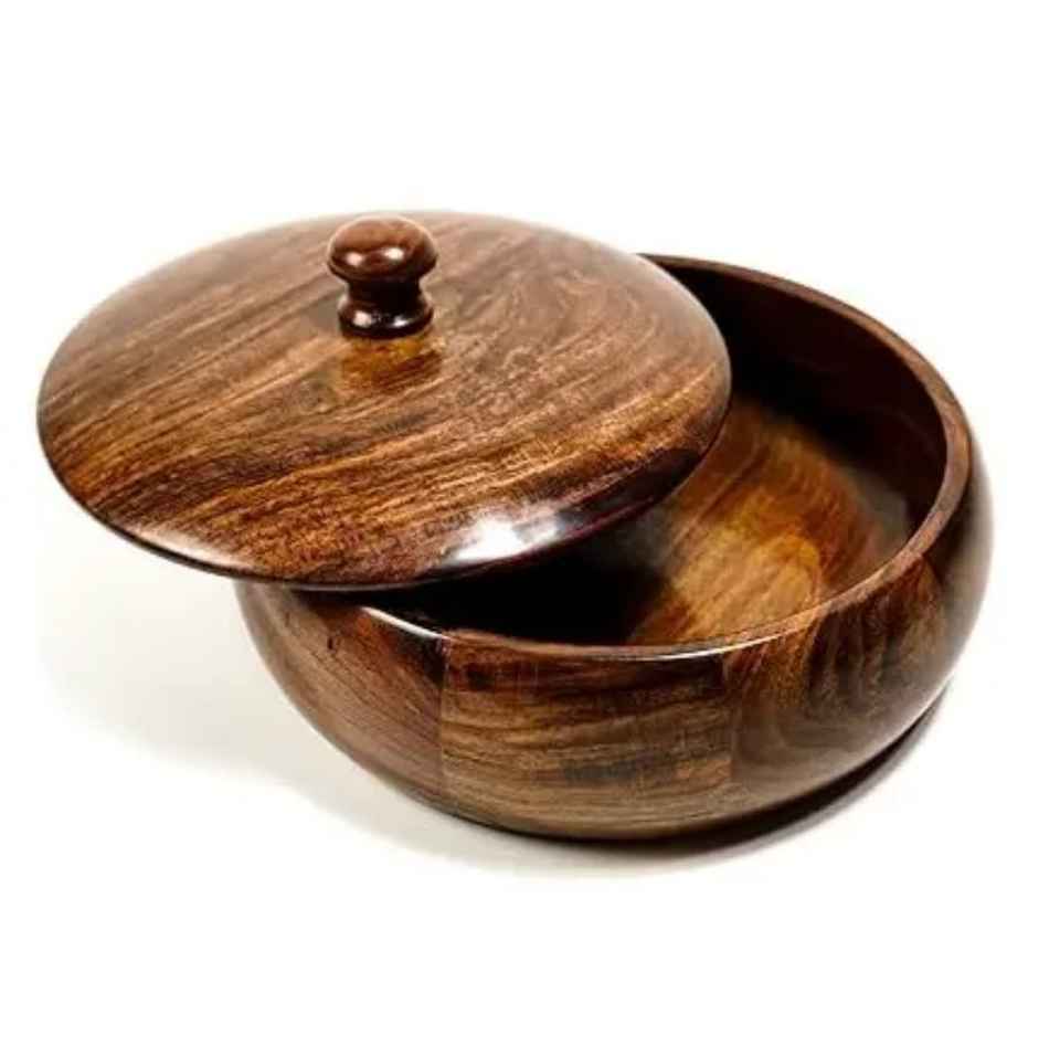 Caja para Chapati de Madera de Mango Maciza Hecha a Mano y Sostenible con Tapa, Recipiente Redondo para Roti, Tazón para Servir y Almacenar Alimentos, Artículo de Vajilla