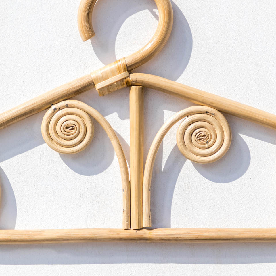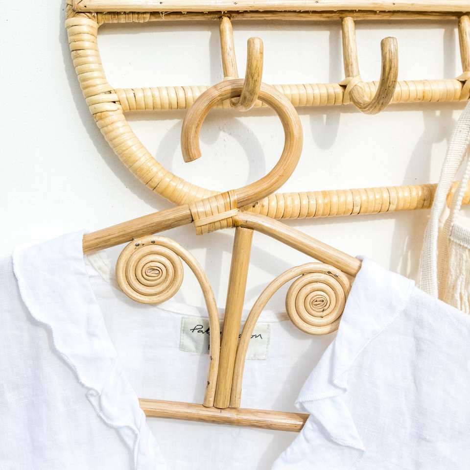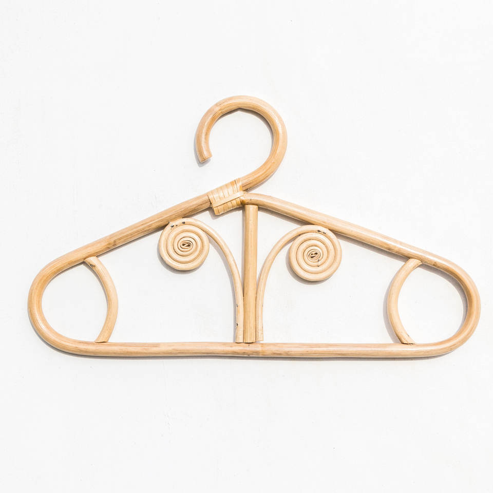 Perchas pequeñas de lujo sostenibles para tienda de ropa de bebé, percha de ropa infantil de ratán al por mayor