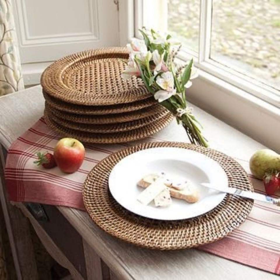 Platos de Carga de Ratán Sostenible al por Mayor, Vajilla Redonda Decorativa Hecha a Mano para Bodas, Fiestas y Catering