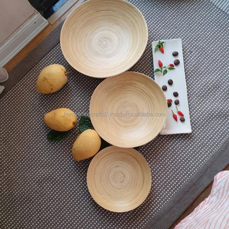 Bandeja de bambú hilado sostenible Exportador Regalo Listo Plato hecho a mano natural Durable Vietnam Ligero Precio de fábrica