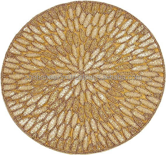 Mantel de cuentas de semillas hecho a mano decorativo de mesa de calidad superior de diseño único sostenible del fabricante indio