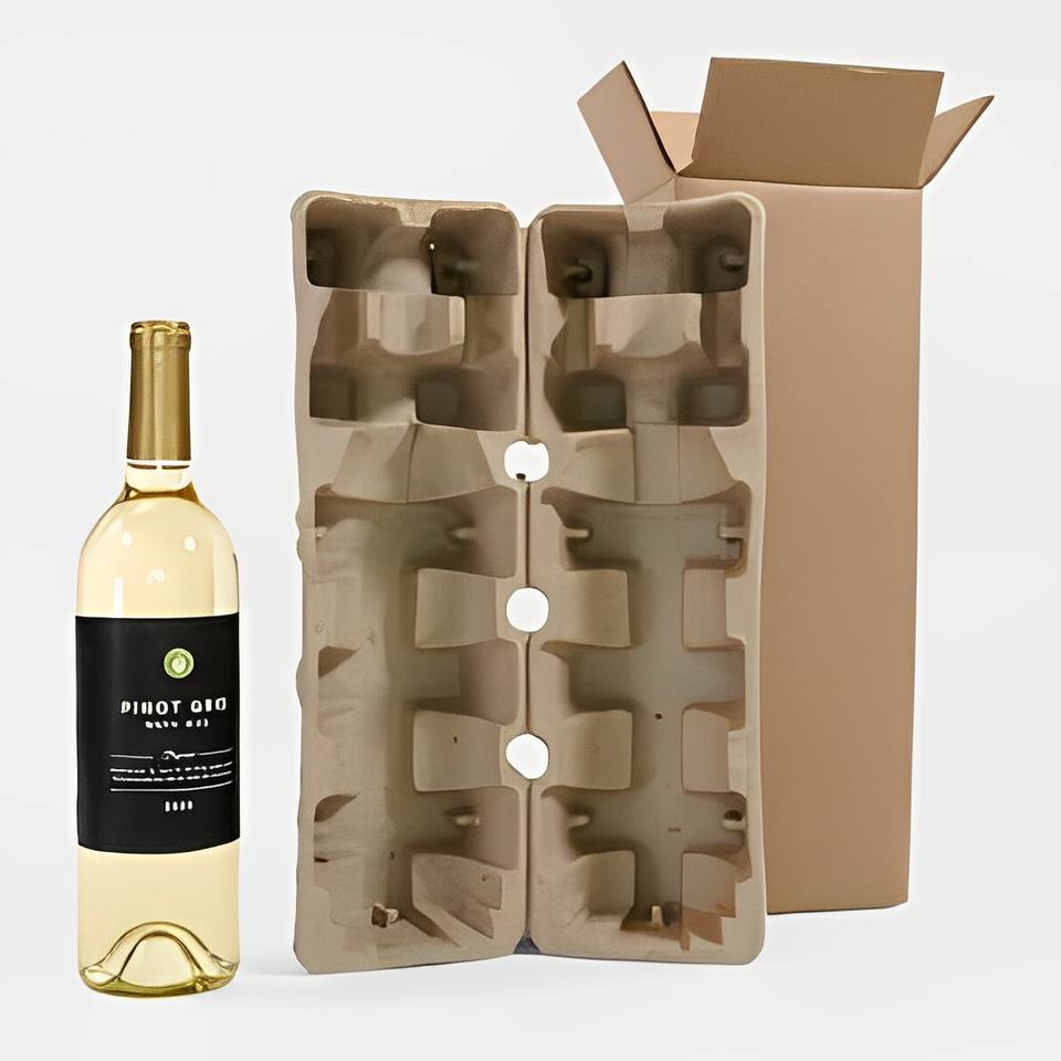 Solución de transporte de vino sostenible: embalaje moldeado de pulpa de vino tinto ecológico para envío de cero residuos