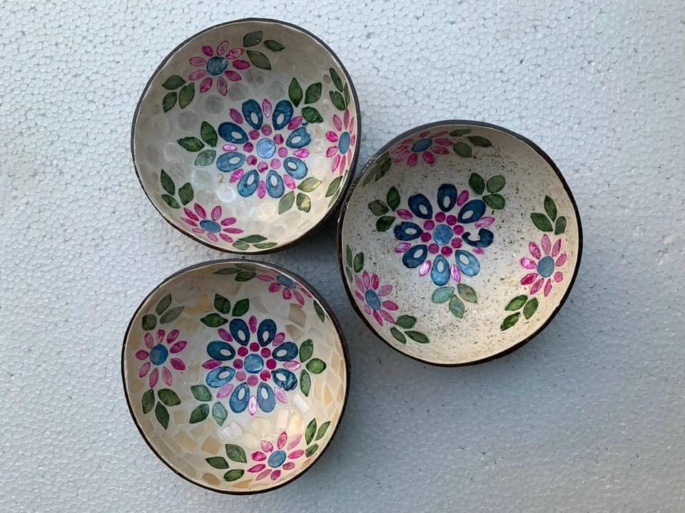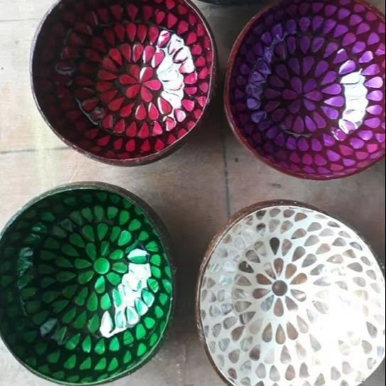 Tazón de bambú sostenible hecho a mano con cáscara de coco y laca de nácar para servir de forma decorativa, Vietnam