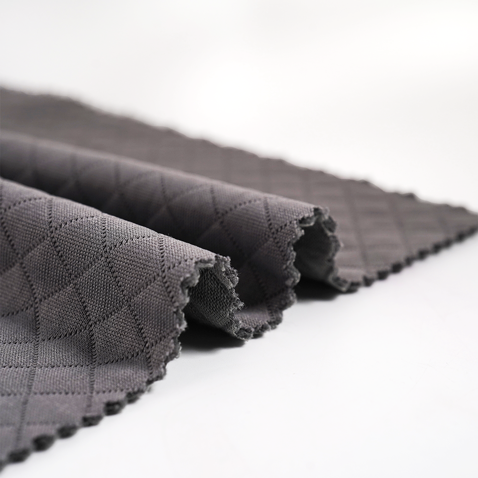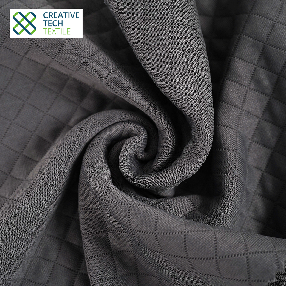 Solución textil sostenible RCO-TK0007 Tejido con mejora de textura Seawool PET/Lyocell=52/42/6 Jacquard Diamond para ropa de viaje