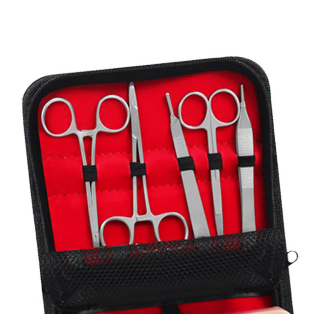 Kit de sutura, instrumento médico, kit de práctica de sutura, juego completo de almohadilla de silicona con tijeras, soporte de aguja, fórceps, herramientas de entrenamiento