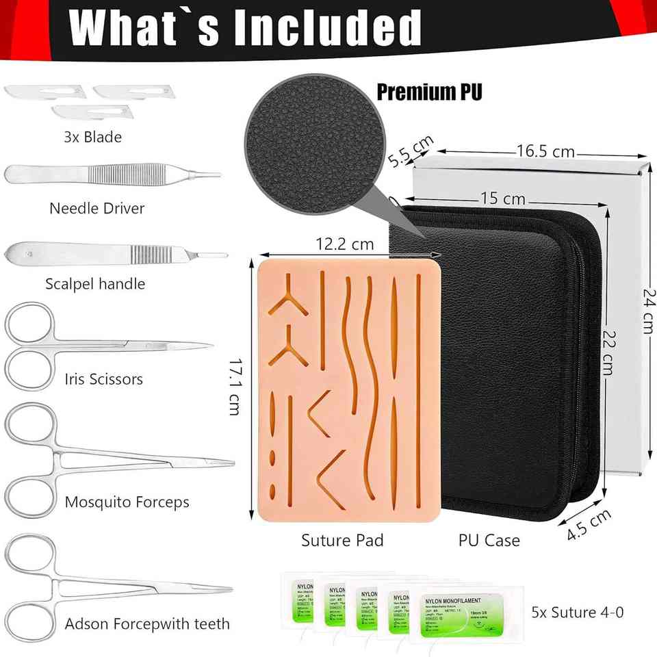 Kit de práctica de sutura-Kit de cirugía con almohadilla de sutura de silicona, fórceps, hilo de sutura y aguja | Kit Sutur, veterinario de instrumentos médicos