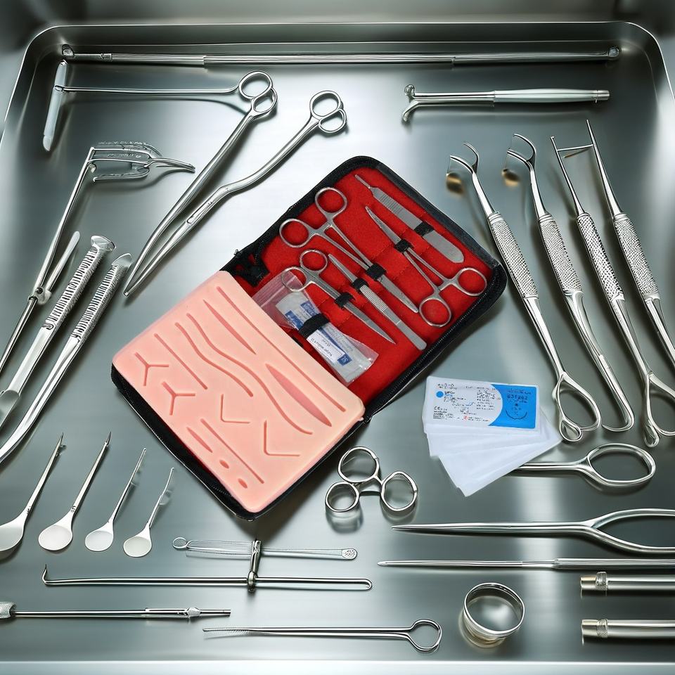 Kit de práctica de sutura con herramientas, hilos y almohadilla de silicona Simulación médica