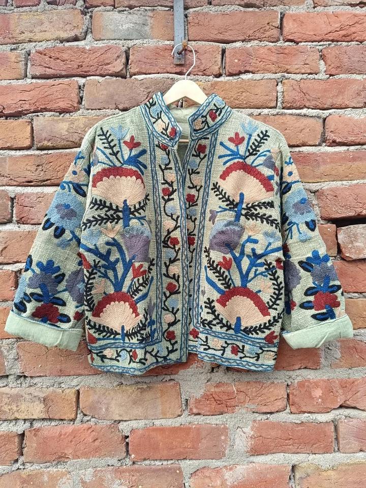 Suzani bordado chaqueta de las mujeres, chaqueta floral, Kantha Vintage hecho a mano chaquetas abrigo, diseñador kimono chaquetas para niñas, Boho