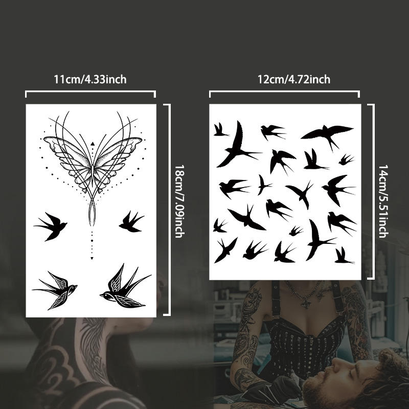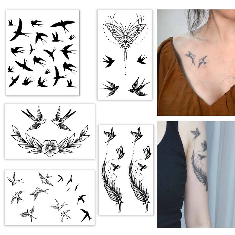 Juego de tatuajes temporales de golondrina Tatuaje semipermanente Impermeable y a prueba de sudor Duradero 2 semanas Brazo antifricción herbal realista