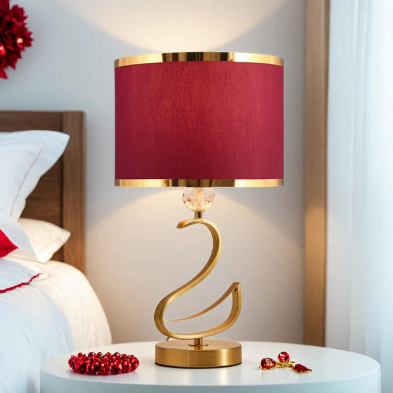 Lámpara de Mesa de Boda Roja de Estilo Crema de Lujo Swan, Romántica y Cálida, Estilo Americano, Lámpara de Noche para Dormitorio, Iluminación Eterna