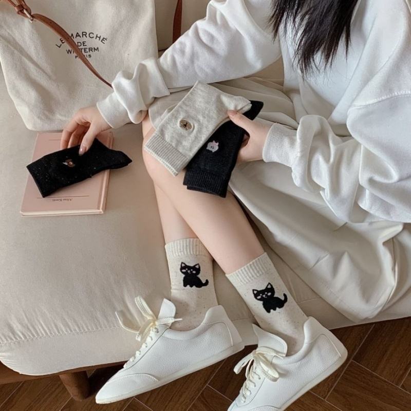 Calcetines de Algodón Transpirables y Absorbentes de Sudor, Calcetines Personalizados para Mujer, Calcetines Cortos con Bordado de Dibujos Animados, Calcetines Casuales de Tobillo, Venta al Por Mayor