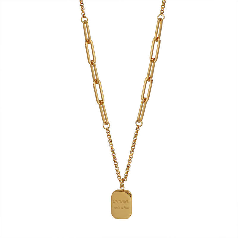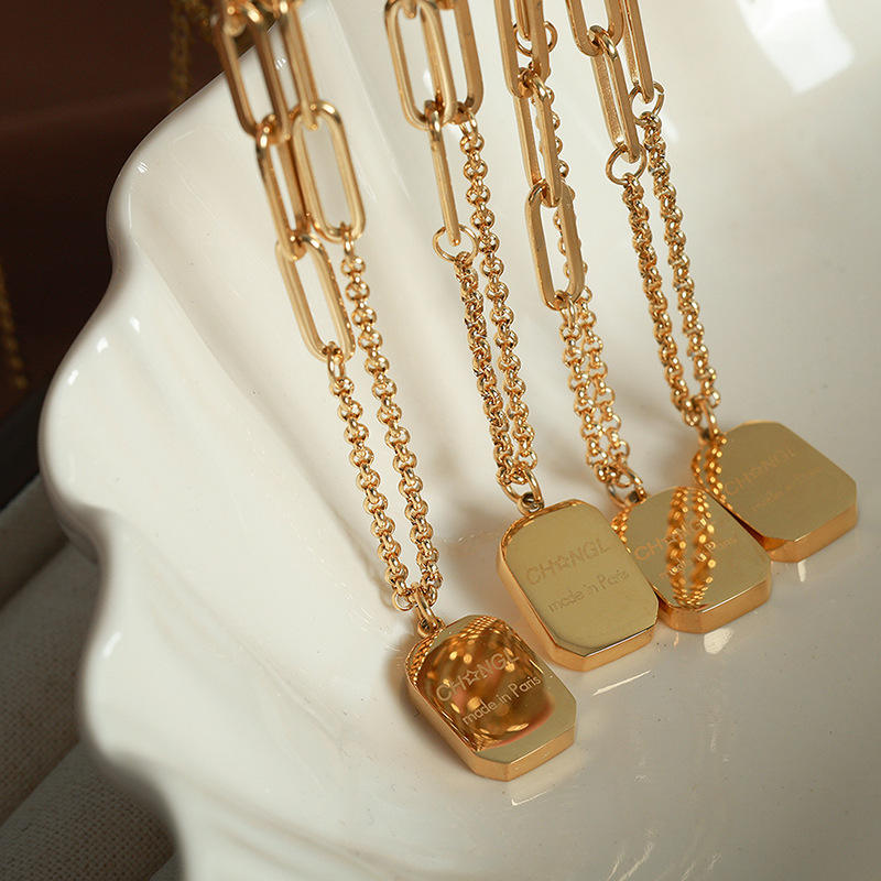 Collar de Cadena para Suéter con Colgante Cuadrado de Letra Dorada, Estilo Minimalista de Acero de Titanio