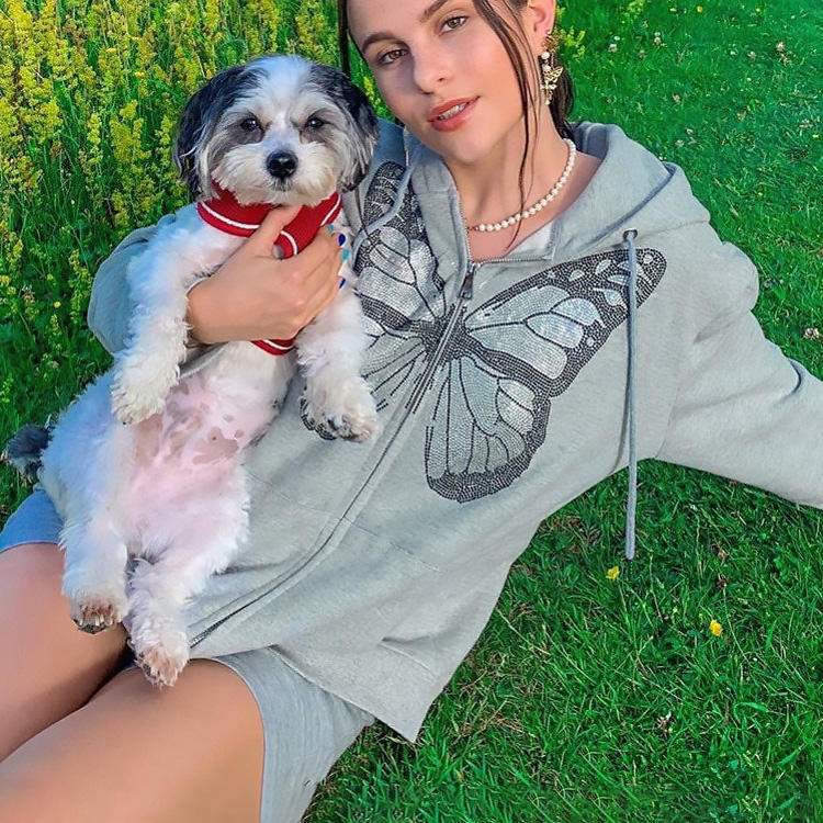 Sudadera con cremallera para correr, con diseño de mariposa y diamantes de imitación, personalizada, talla grande, bolsillos, tela ancha de LICRA