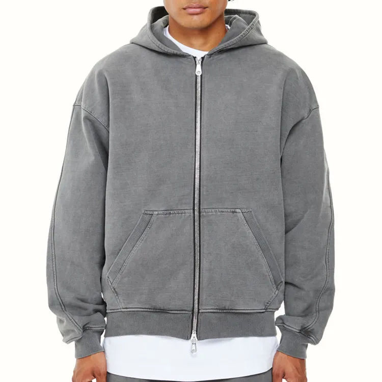 Product name:Drop shoulder zip up hoodie